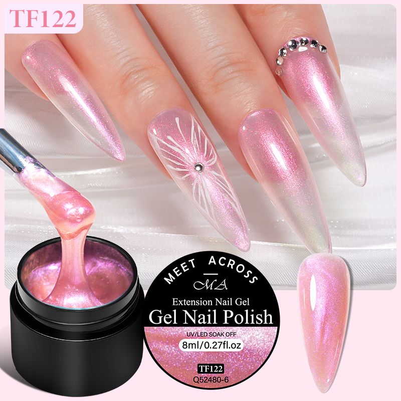 MEET ACROSS 8ml Light Violet Aurora Extension Nail Gel Polish Semi Permanent DIY Nail Art French Style UV Building Gel Varnish