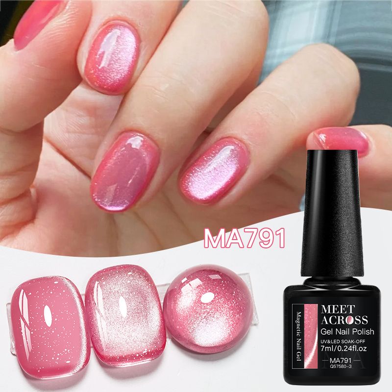 MEET ACROSS Guava & Grape Color Cat Magnetic Gel Green Glass Bead Cat Eye Gel Soak Off UV Gel Nail Art Varnish Salon Home DIY