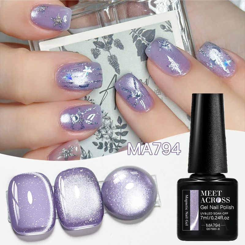 MEET ACROSS Guava & Grape Color Cat Magnetic Gel Green Glass Bead Cat Eye Gel Soak Off UV Gel Nail Art Varnish Salon Home DIY