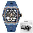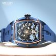 MEGIR 2242 Blue Automatic Watch for Men Sport Waterproof Stainless Steel Mechanical Wristwatch with Silicone Strap Skeleton Dial