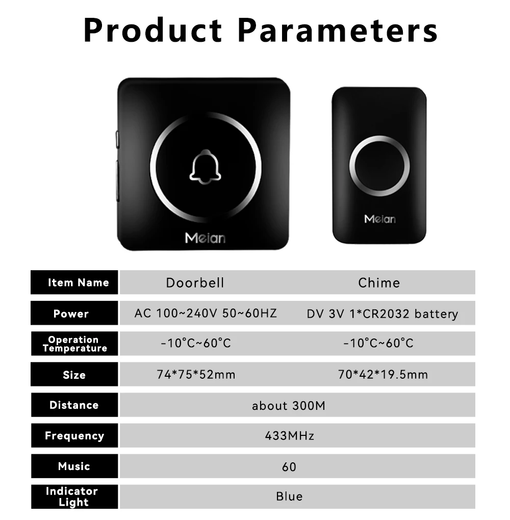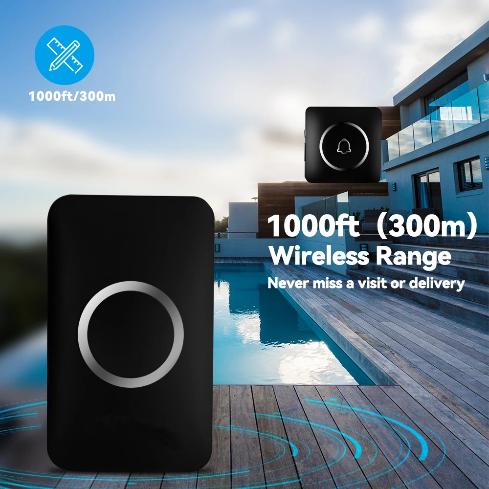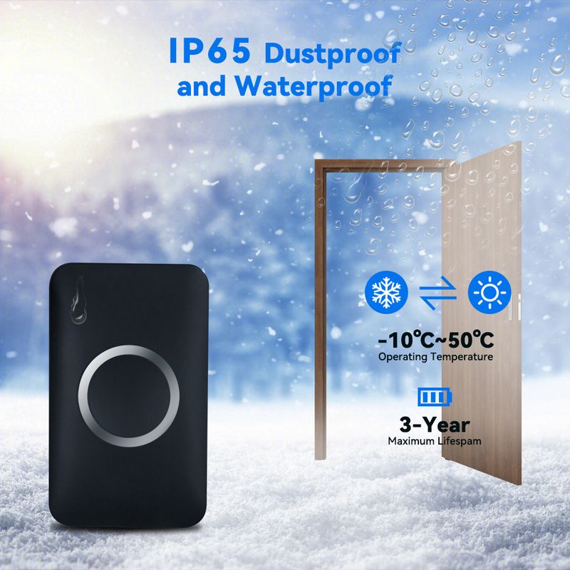 With a reliable wireless range of 1,000 feet and strong signal penetration, the doorbell will never fail to alert you when someone shows up at the door. Enjoy a reliable and hassle-free doorbell system at home, in factories, offices, classrooms, apartment blocks, villas, and other large areas.