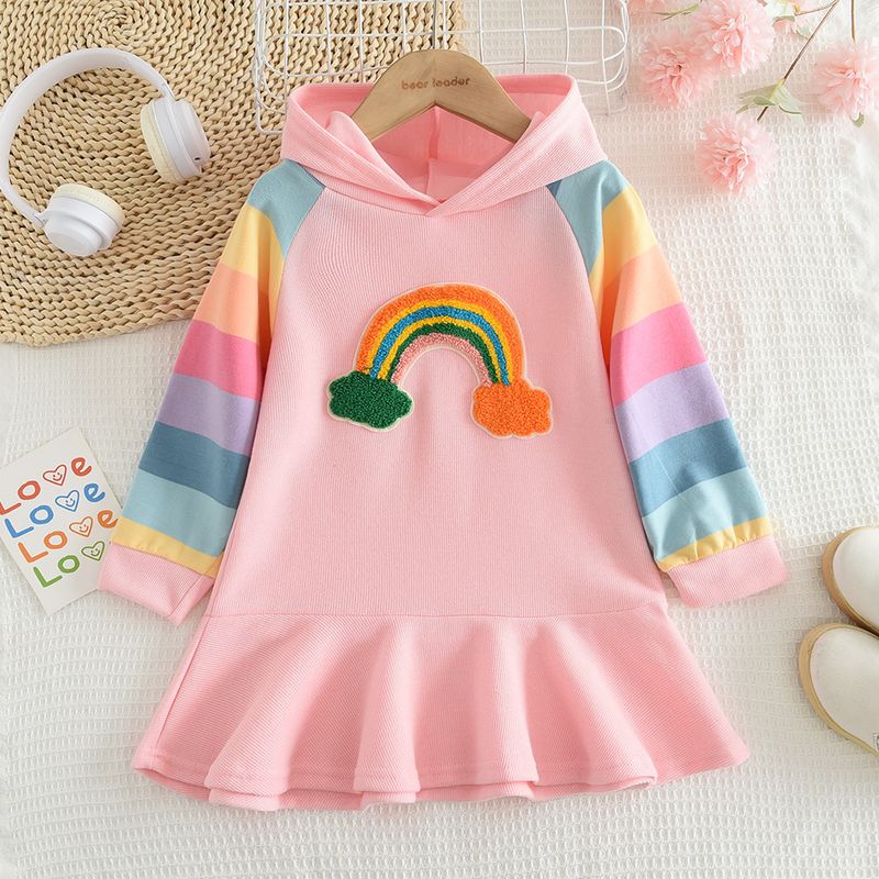 Melario Girls Dress Autumn Long Sleeve Rainbow Striped Princess Dresses for Girl Kids Dress Casual Children Clothing