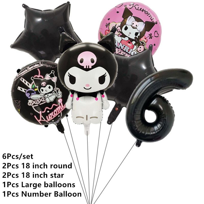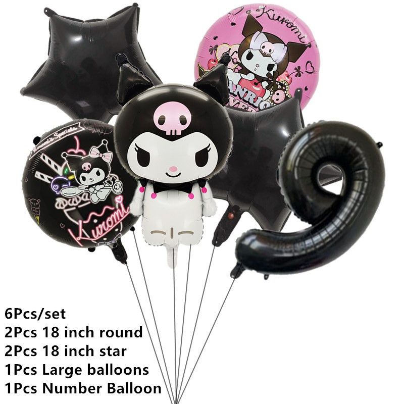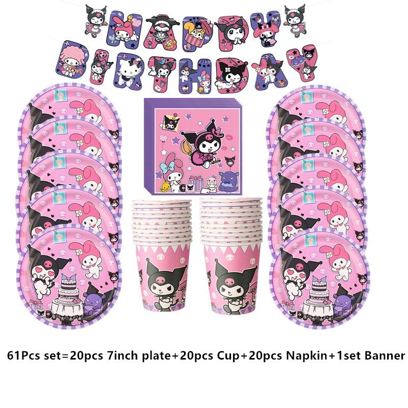 Melody Cartoon Anime Kuromi Theme Birthday Scene Decoration Supplies Party Decorations Banners Balloons Flag Pulling Party Set