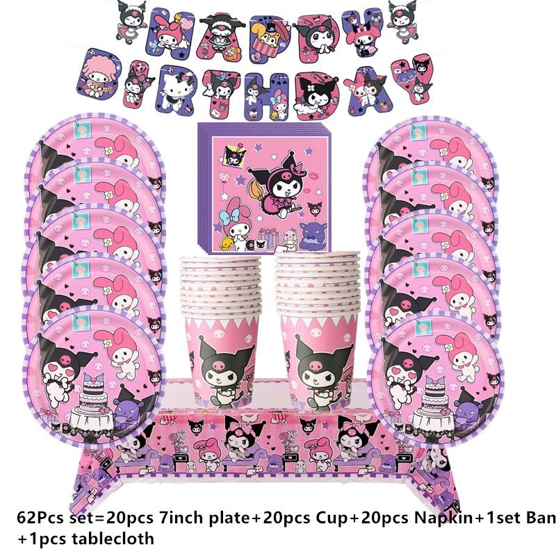 Melody Cartoon Anime Kuromi Theme Birthday Scene Decoration Supplies Party Decorations Banners Balloons Flag Pulling Party Set
