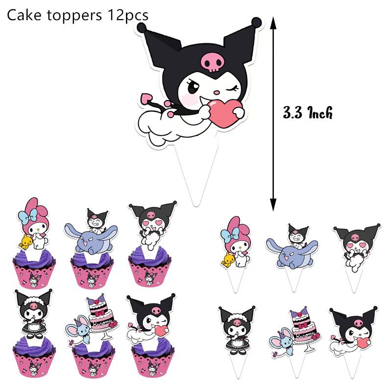Melody Cartoon Anime Kuromi Theme Birthday Scene Decoration Supplies Party Decorations Banners Balloons Flag Pulling Party Set