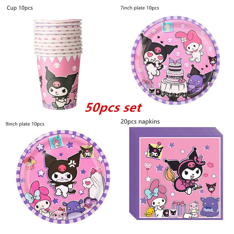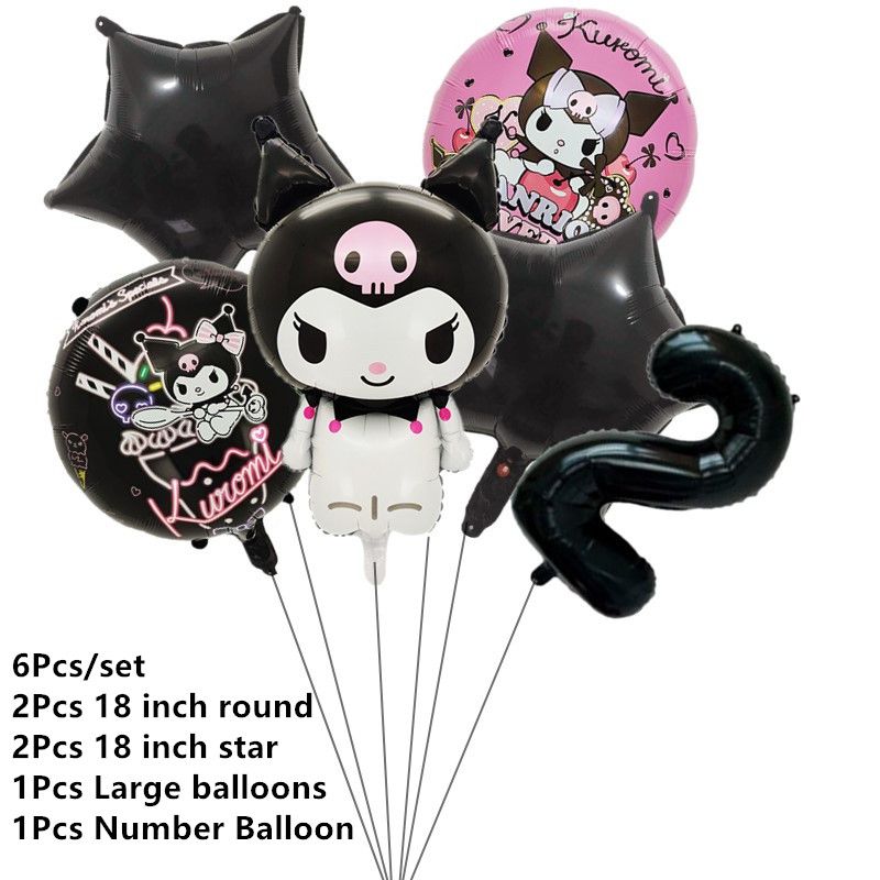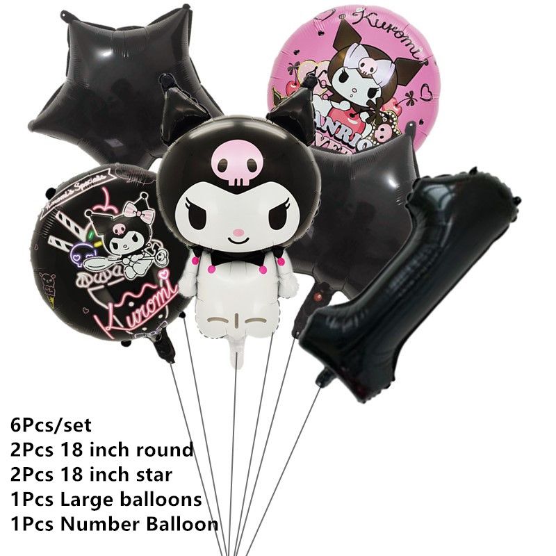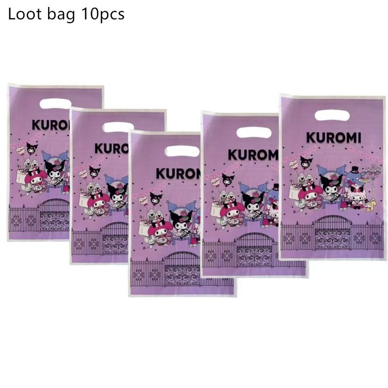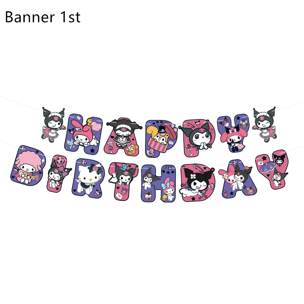 Melody Cartoon Anime Kuromi Theme Birthday Scene Decoration Supplies Party Decorations Banners Balloons Flag Pulling Party Set