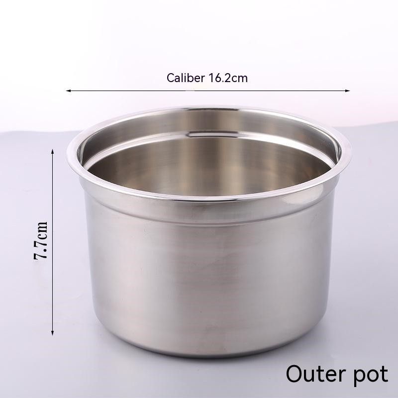Specification: outer pot (diameter cm, height 7.7cm) inner cooking pan (diameter cm, height 6cm)