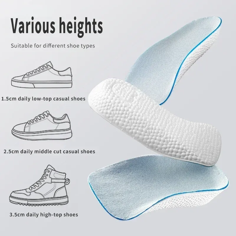 Memory Foam Height Increase Insoles for Men Women Shoes Flat Feet Arch Support Orthopedic Insoles Sneakers Heel Lift Shoe Pads