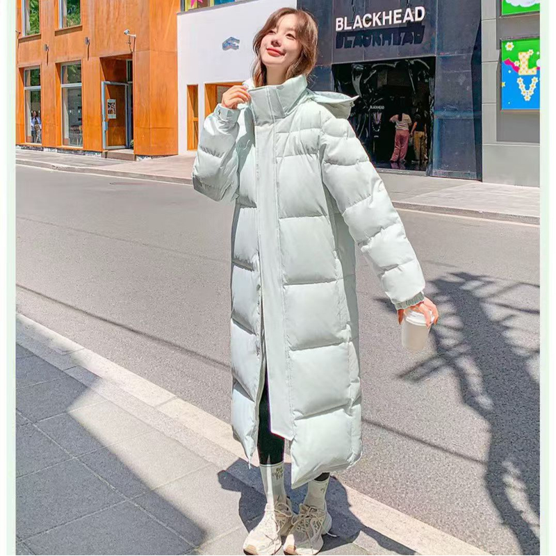 Men And Women Couple Extended Over-the-knee Winter Thickened White Duck Down Coat Bean Green M
