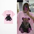 Men And Women Couples Japanese Retro Thick Loose Round Neck Short Sleeve T-shirt Pink S