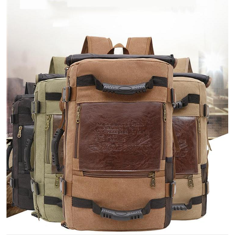 Men Canvas Backpack Huge Travel School Shoulder Computer Backpack Functional Versatile Bags Multifunctional Laptop Bag Green
