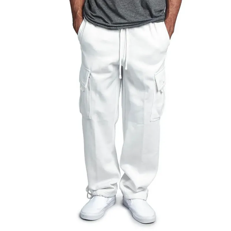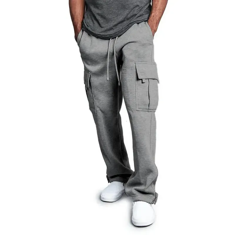 Men Cargo Jogger Pants Autumn Winter Fleece Sweatpants Loose Trousers Multi Pocket Overalls Hip Hop Streetwear Cargo Long Pants