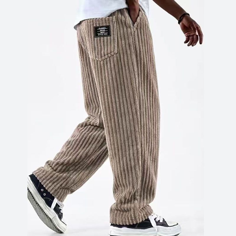 Men Casual Pants Corduroy Trousers Loose Fit Vintage Baggy Pants Straight Sweatpants Elastic Waist Drawstring Outdoor Streetwear