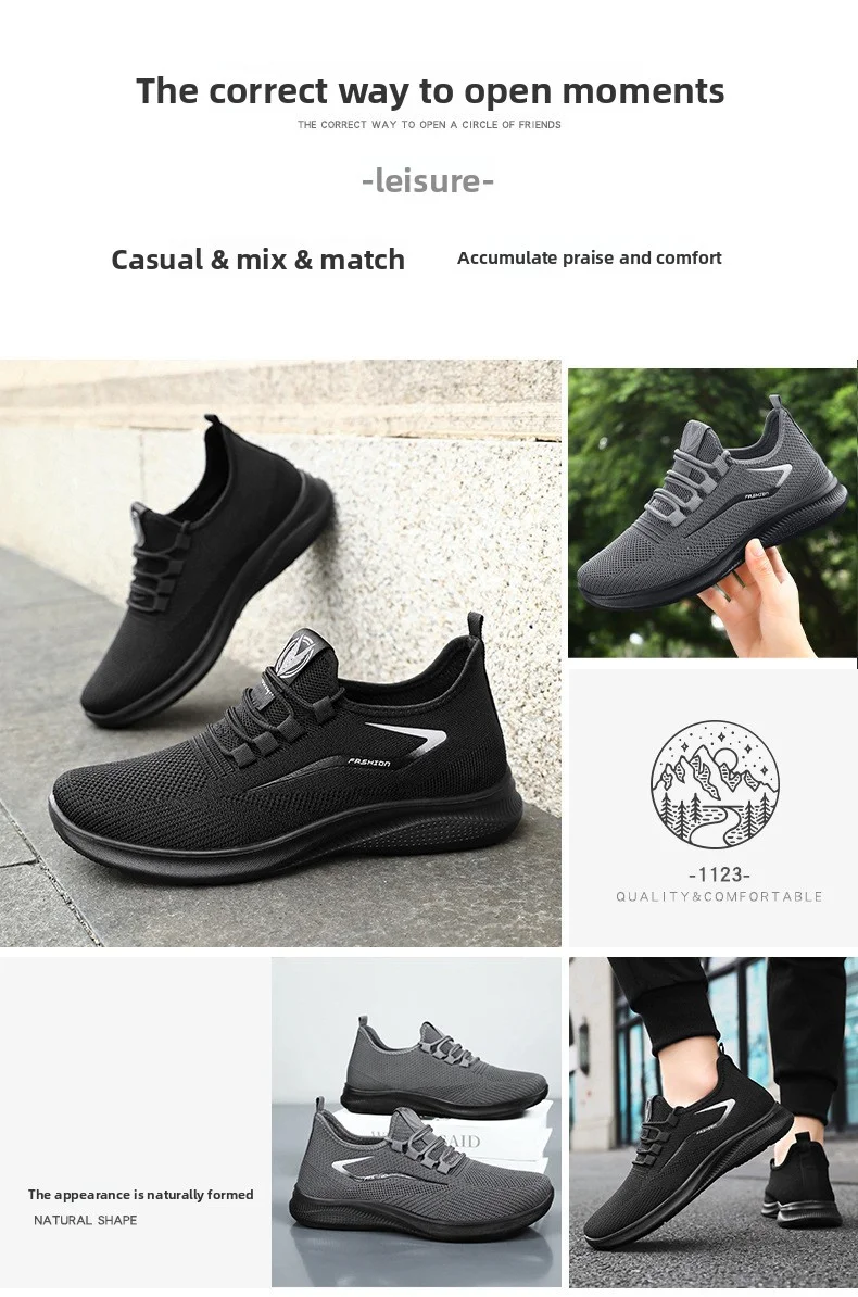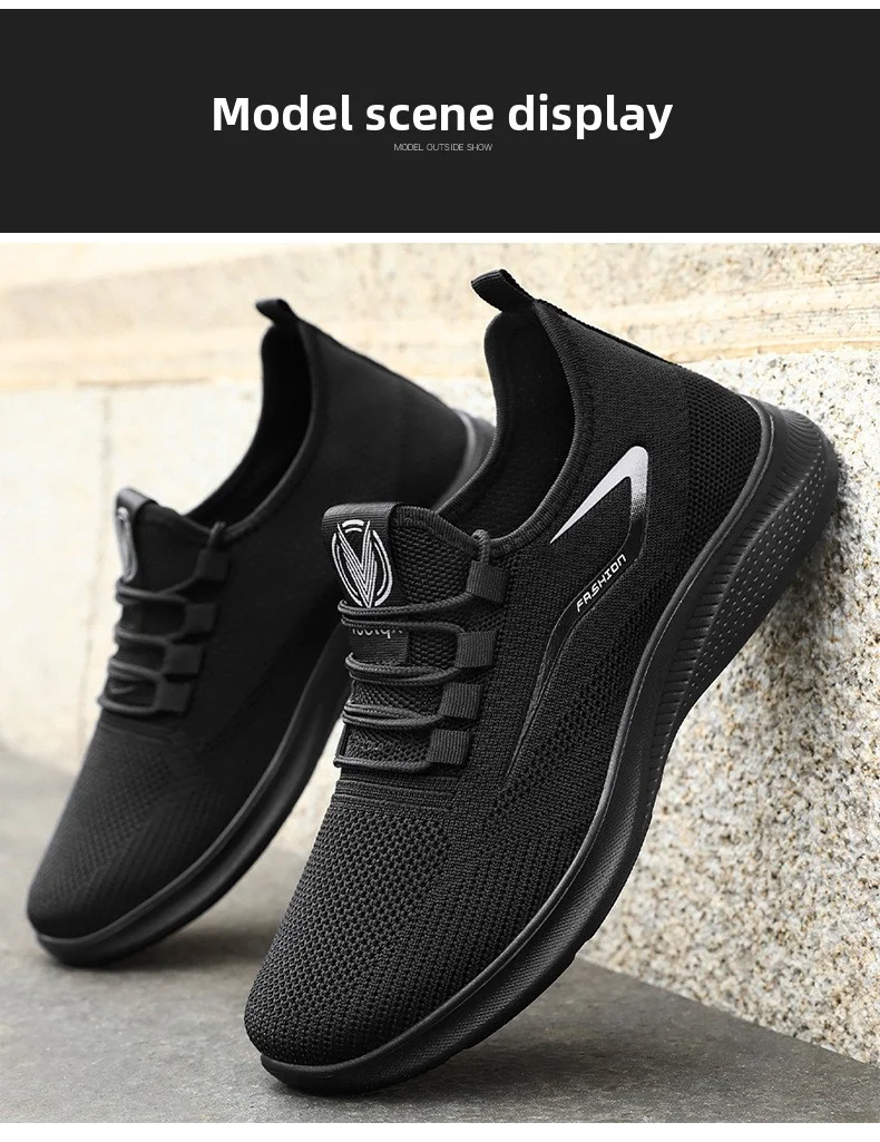 Men Casual Sport Shoes Breathable Lightweight Sneakers Outdoor Mesh Black Running Shoes Athletic Jogging Tenis Walking Shoes