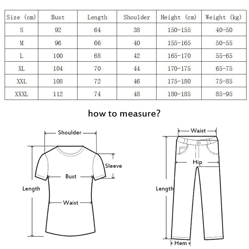 XL =Bust 92cm, Length 69cm , For Weight 60-70kg Height 175-180cm;