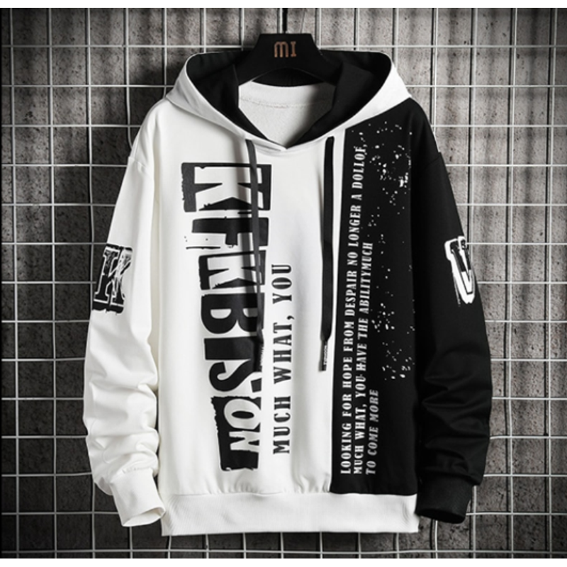 Men Fashion Brand Long-sleeved Hooded T-shirt Casual All-match Sweater White 2XL