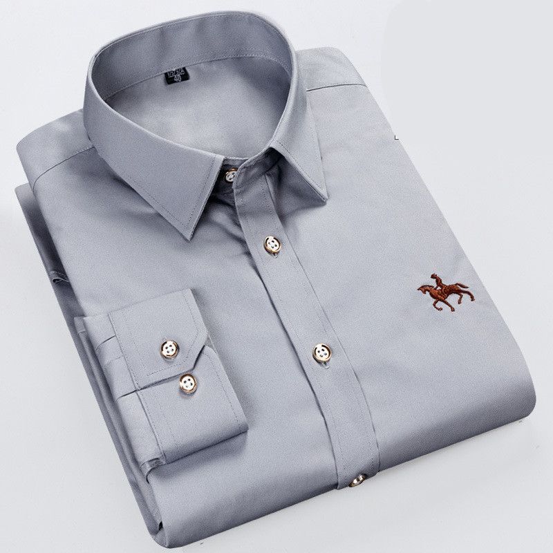 Men Fashion Long Sleeve Shirt Casual Grey 46