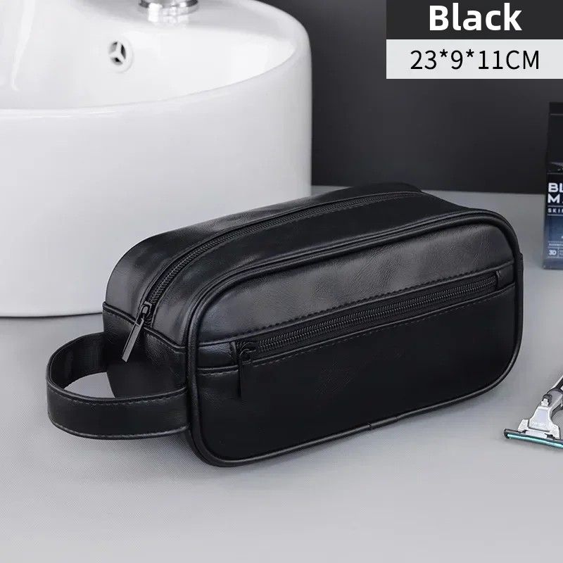 Men Leather Wash Bag Travel Business Trips Portable Cosmetic Bag Large Capacity Multi Pocket Design Handheld Leather Wash Bag