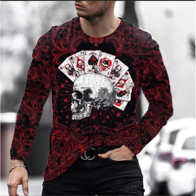 Men Long Sleeve Digital Print Skull T-shirt E L