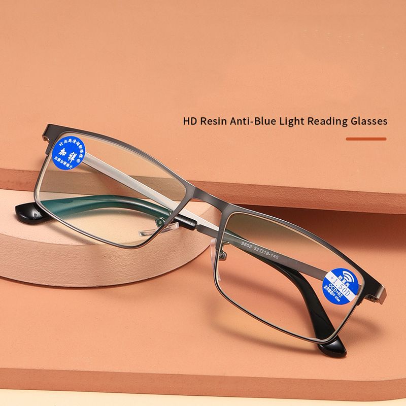 Men Metal Half Frame Reading Glasses Luxury Designer Anti Blue Light Eyeglasses Finished Prescription Presbyopia Eyewear To +4.0