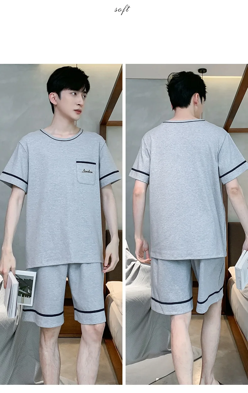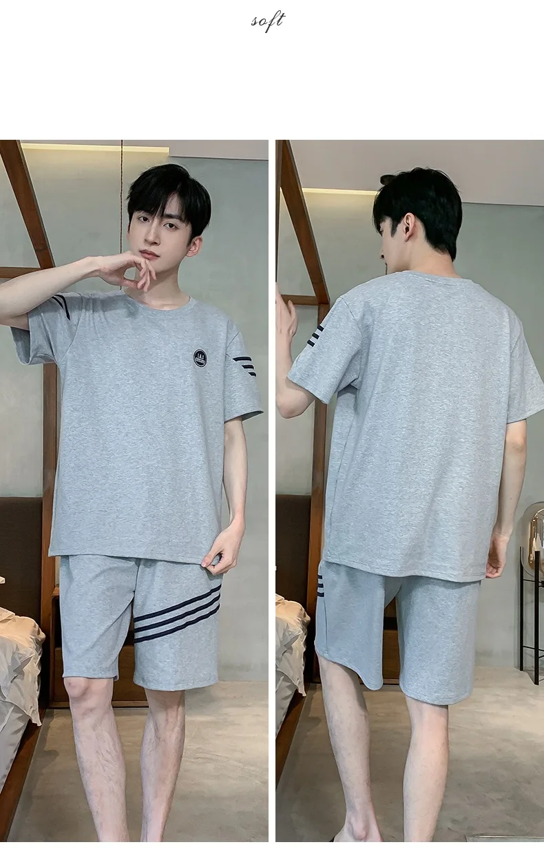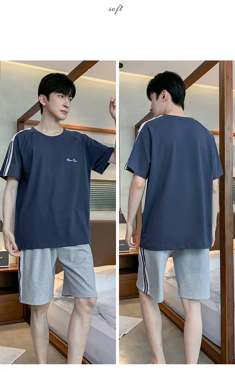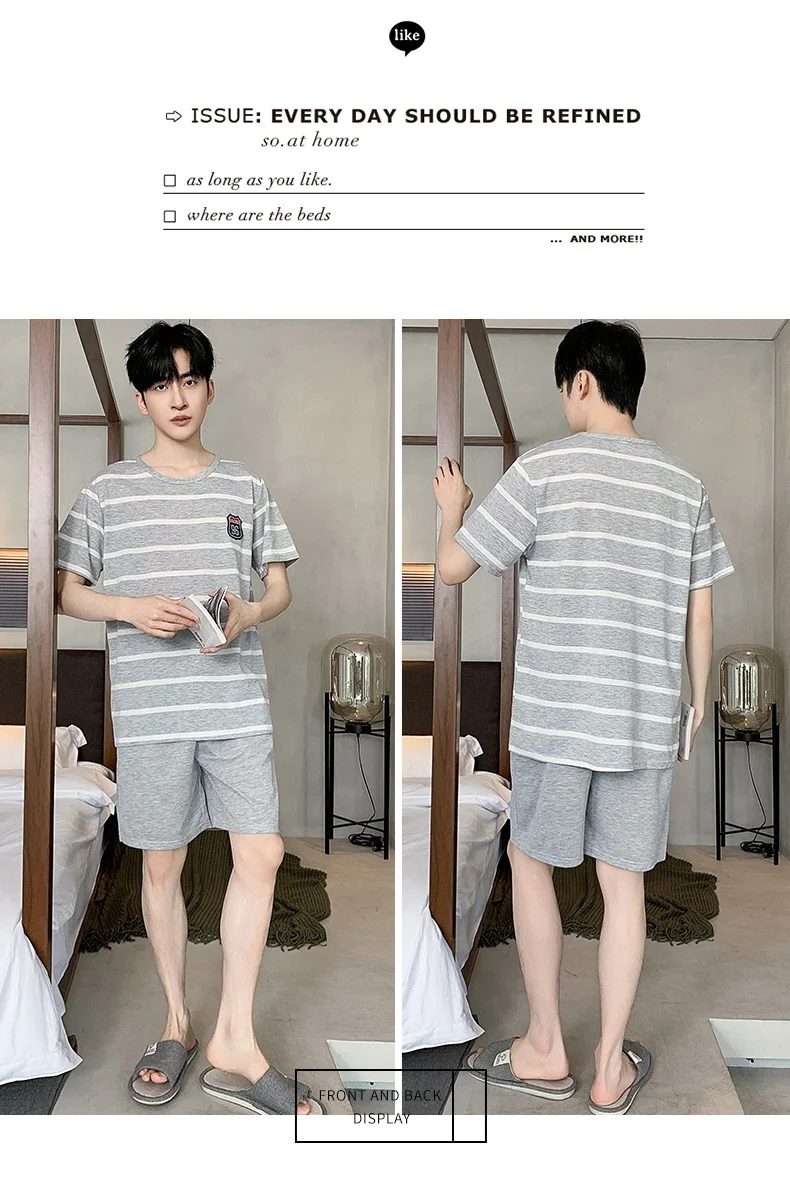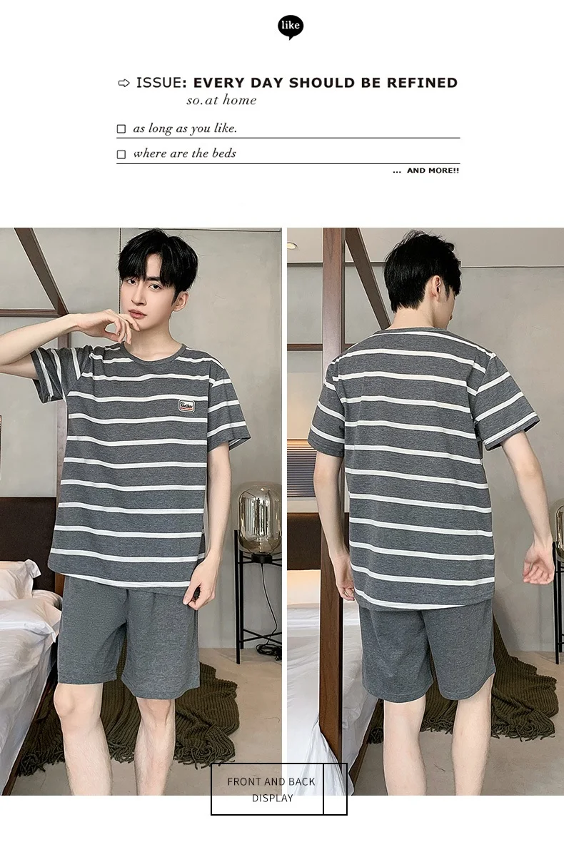 Men Pajama Set Cotton Short Sleeve Shorts Casual Striped Nightwear Loungewear Two-Piece Set Plus Size Summer Man Sleepwear