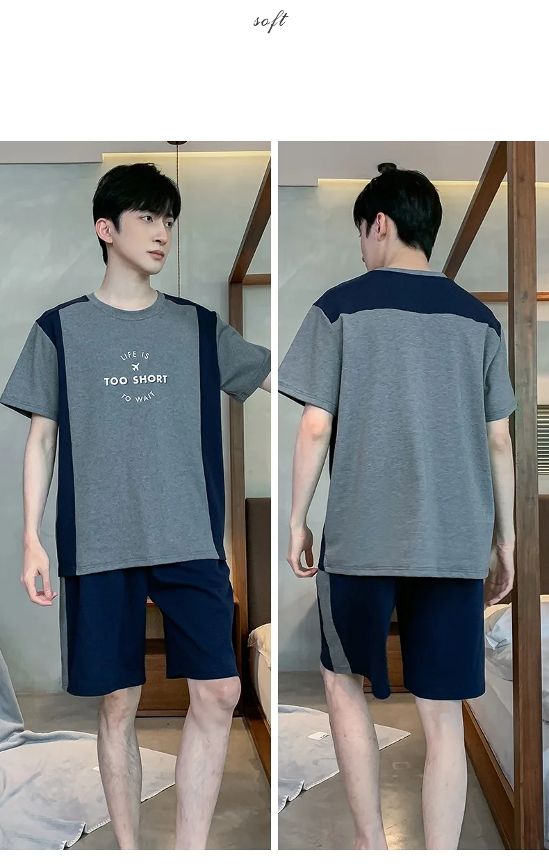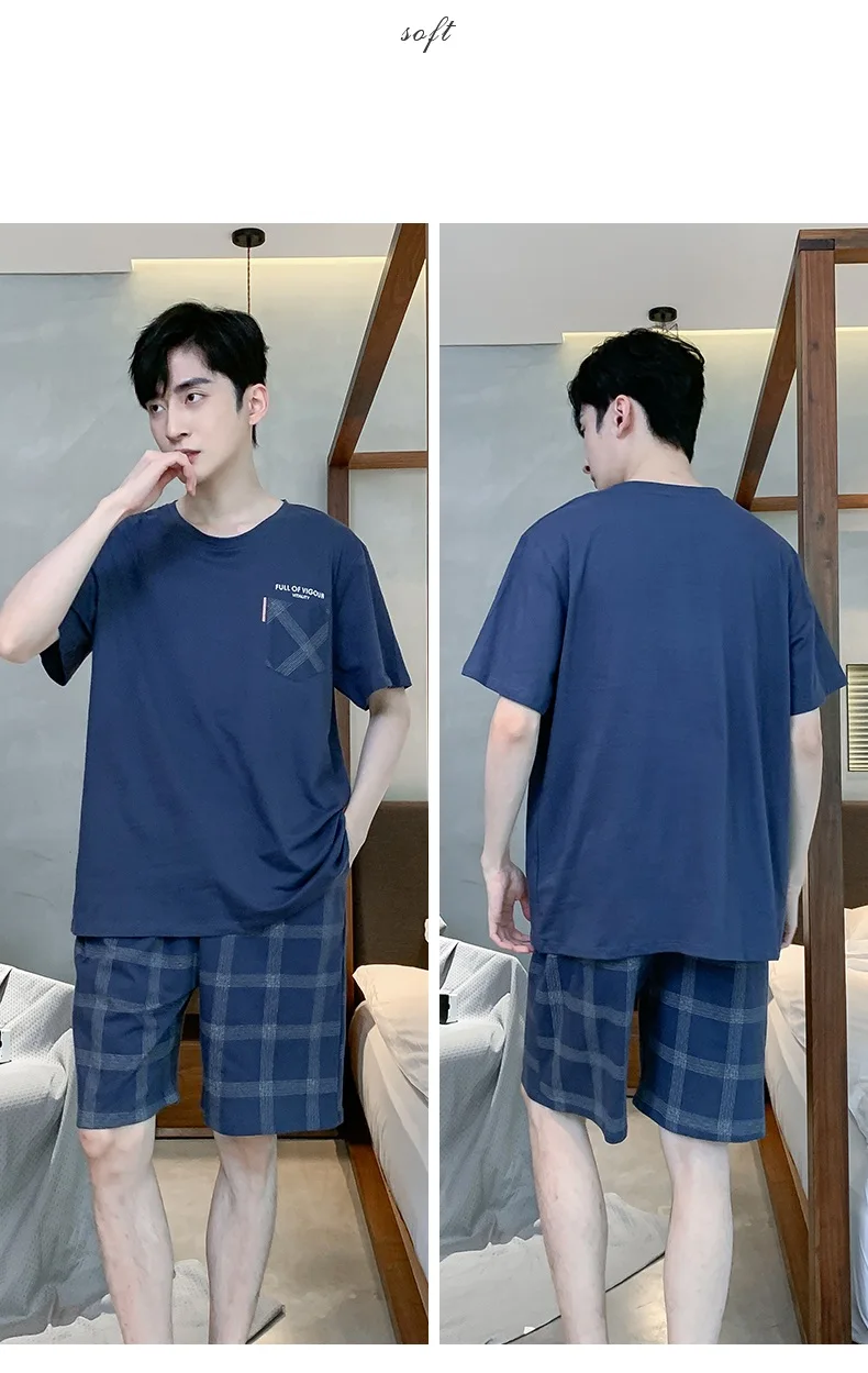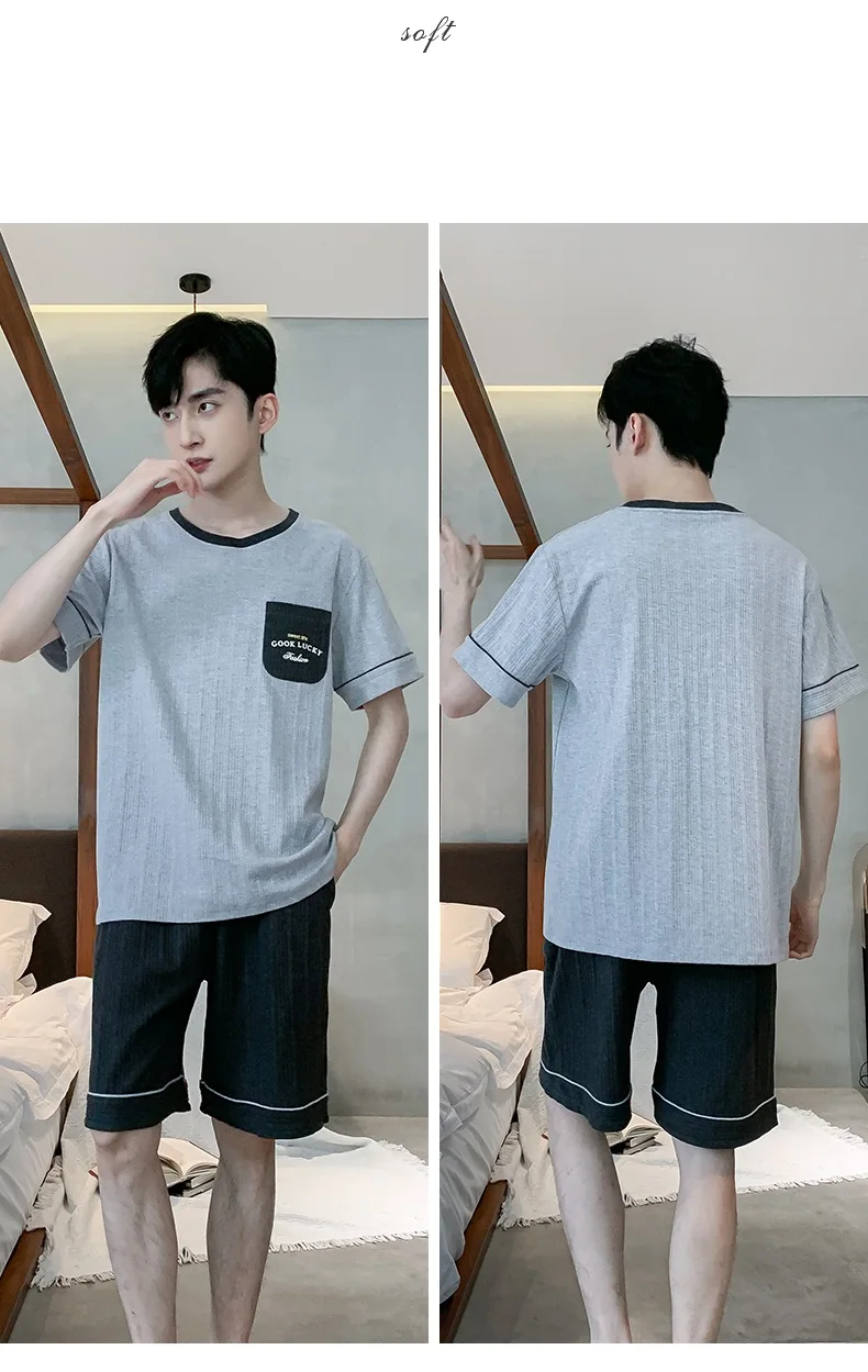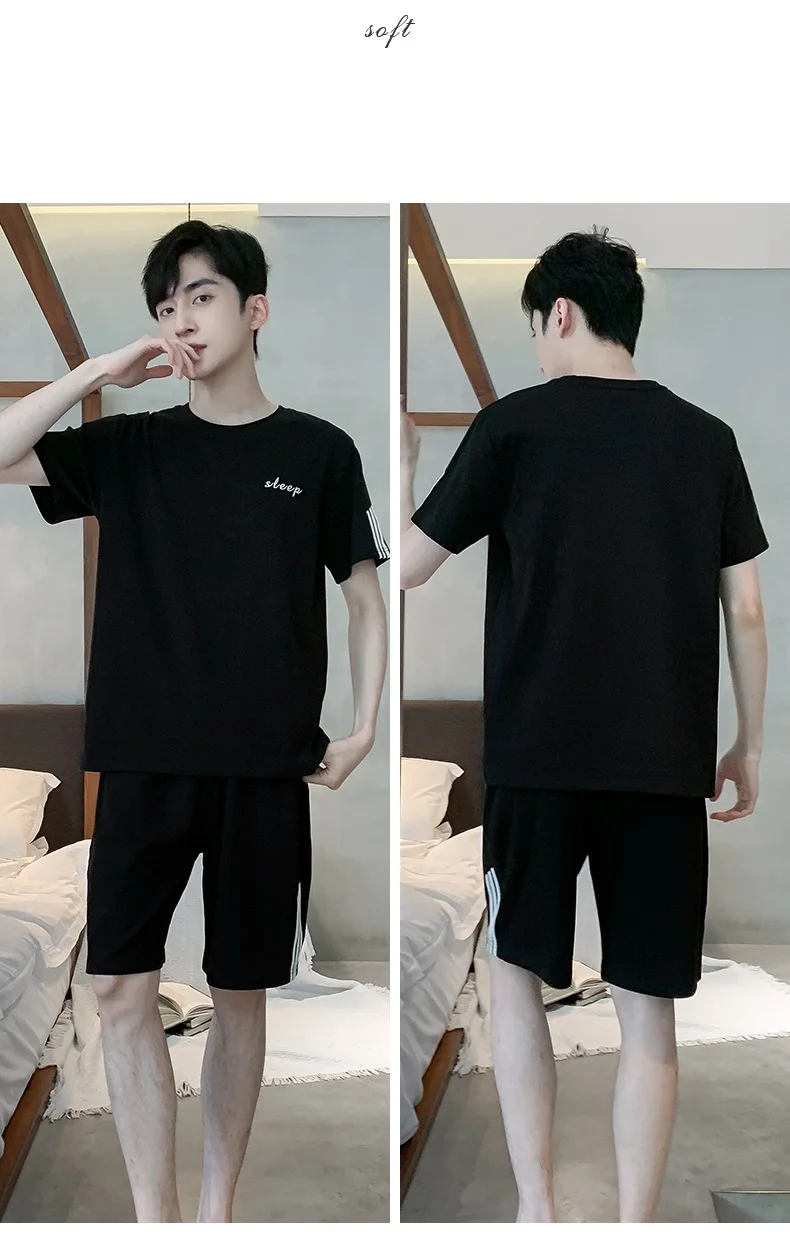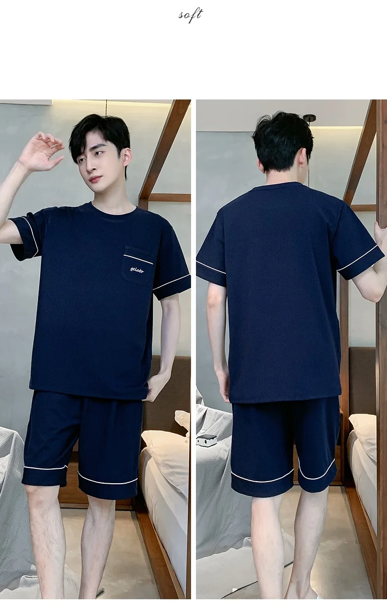 Men Pajama Set Cotton Short Sleeve Shorts Casual Striped Nightwear Loungewear Two-Piece Set Plus Size Summer Man Sleepwear