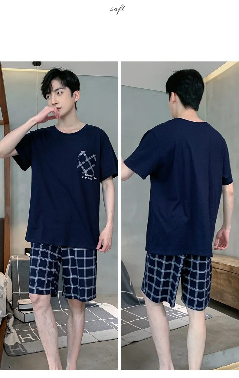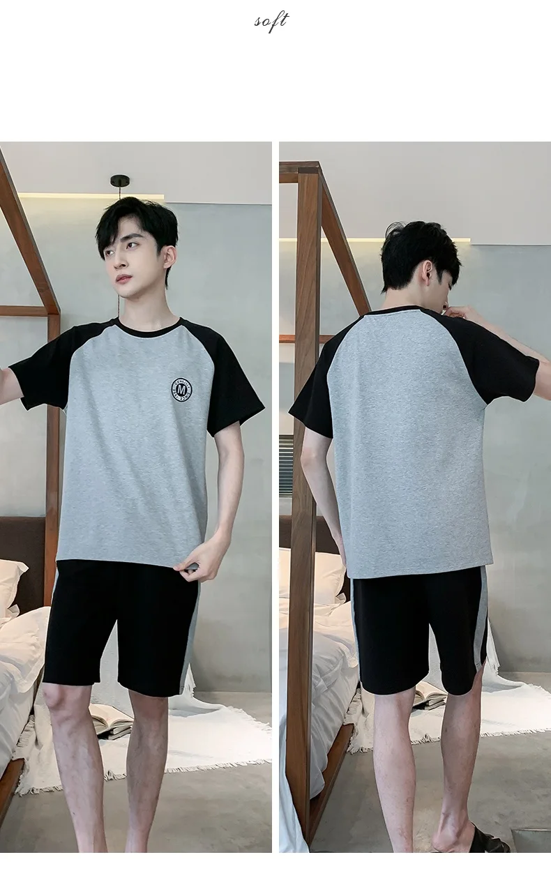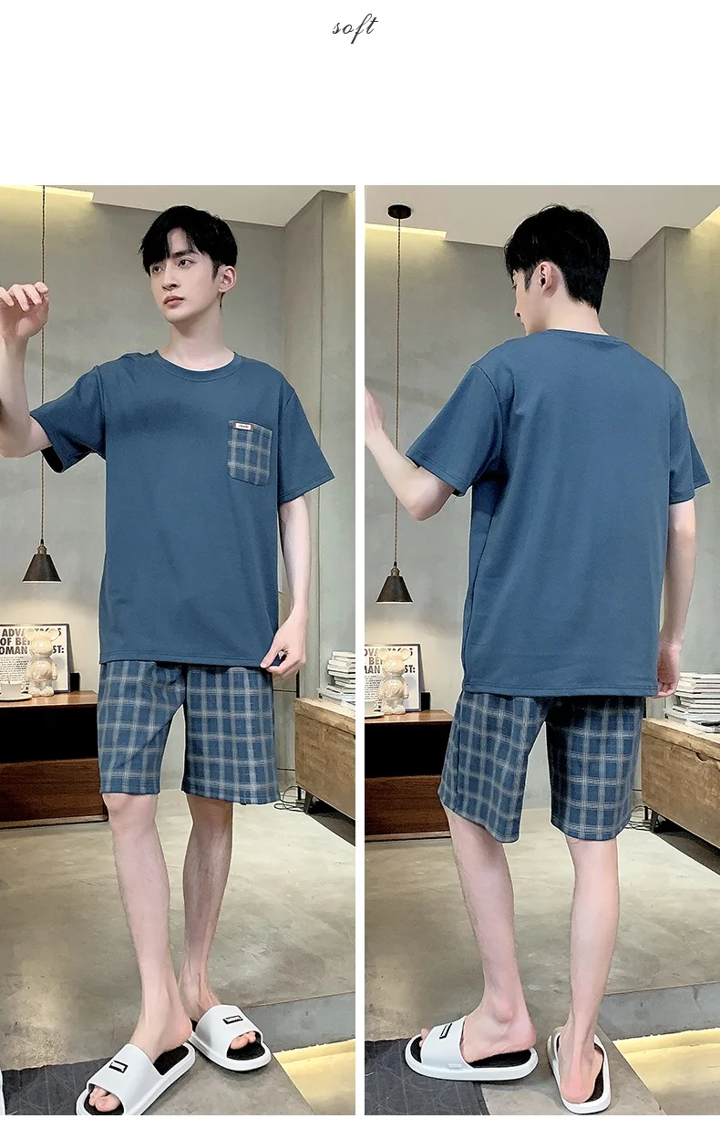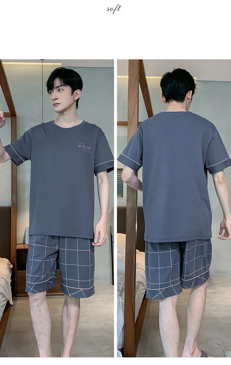 Men Pajama Set Cotton Short Sleeve Shorts Casual Striped Nightwear Loungewear Two-Piece Set Plus Size Summer Man Sleepwear
