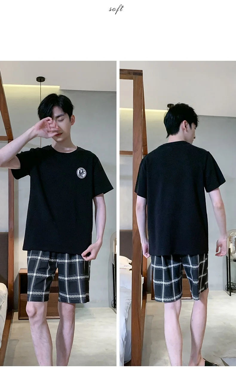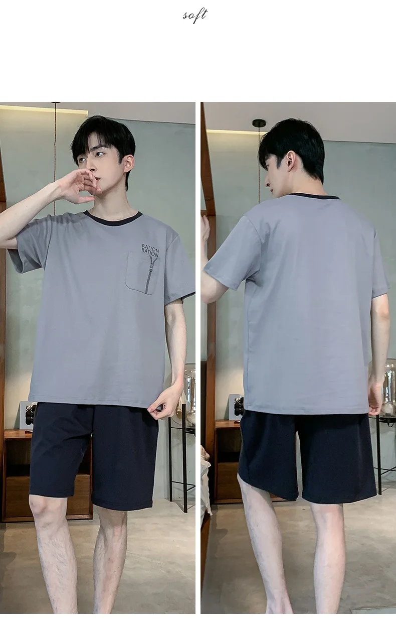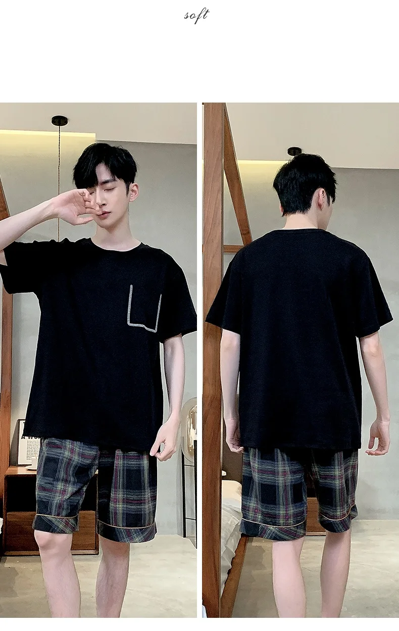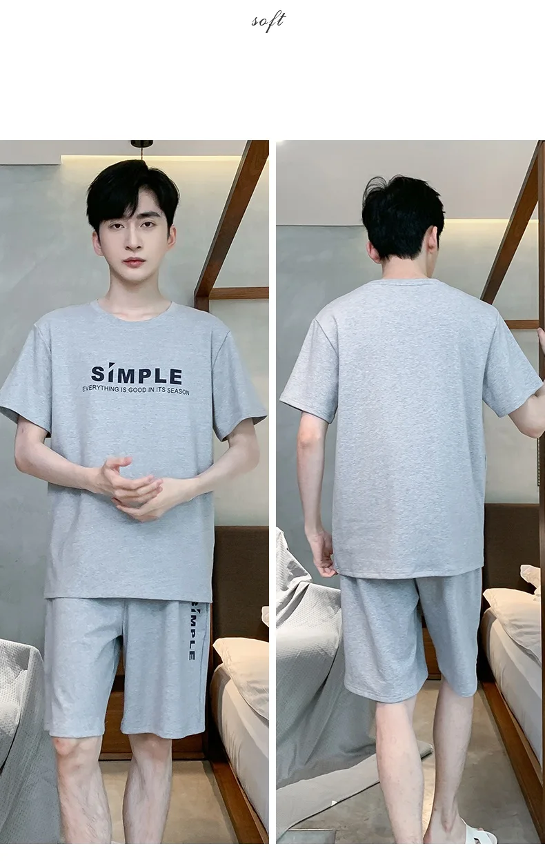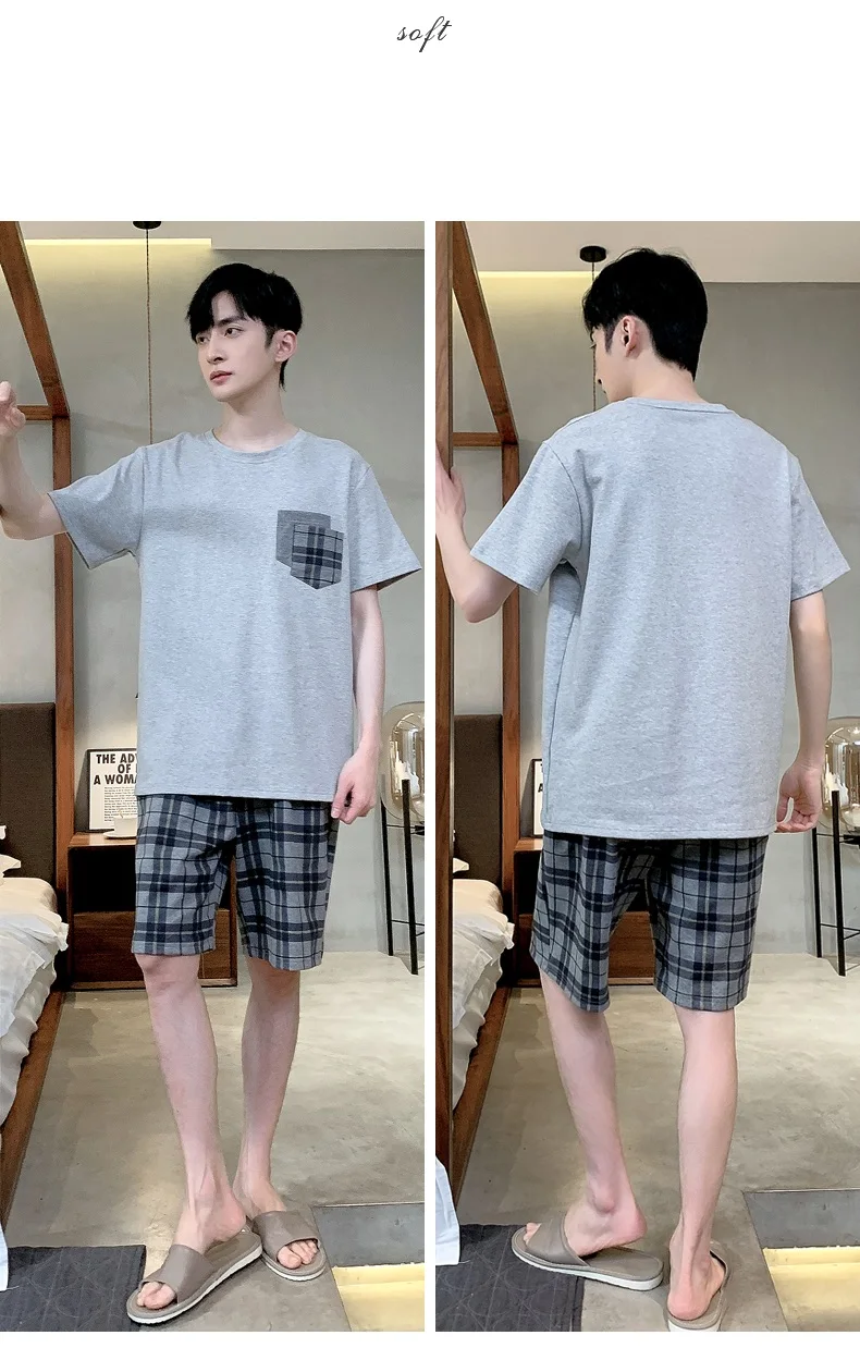 Men Pajama Set Cotton Short Sleeve Shorts Casual Striped Nightwear Loungewear Two-Piece Set Plus Size Summer Man Sleepwear