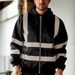 Men Reflective Stripe Hoodie Sweatshirt Long Sleeve Fitting Zipper Hooded Pullover Sanitation Workers Work Clothes Sweatshirt