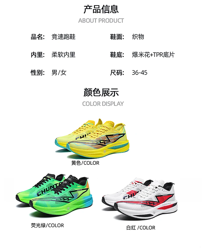 Men Running Shoes Carbon Plate Speciality Marathon Sports Breathable Lightweight Women's Comfortable Leisure Chunta Sneakers
