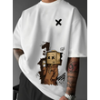 Men's 100% pure cotton fashionable casual sports loose trendy doll graffiti printed round neck short sleeved T-shirt top