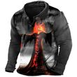 Men's 3D Digital Printing Long Sleeve Zipper Polo Shirt 5color M