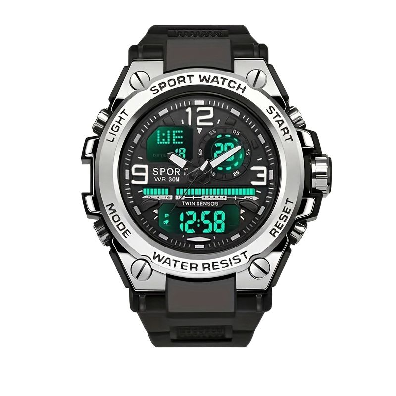 Men's and Women's Dual Display Racing Watch: Large Dial++Alarm Clock+Double Calendar+Stopwatch Function, Fearless of Dark Lighting Environments
