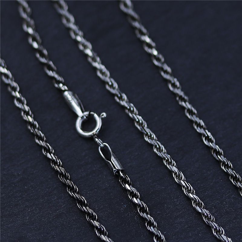 Men's And Women's Versatile Long S925 Sterling Silver Fried Dough Twist Necklace Silver 2mmx45cm
