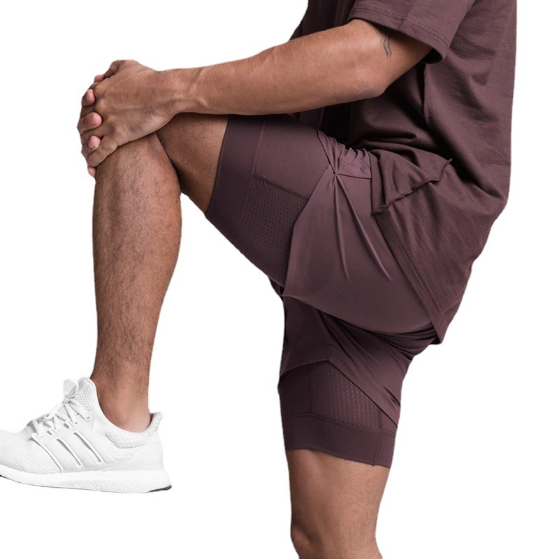 Men's Athletic Shorts Double-layer Fitness Wicking Brown S