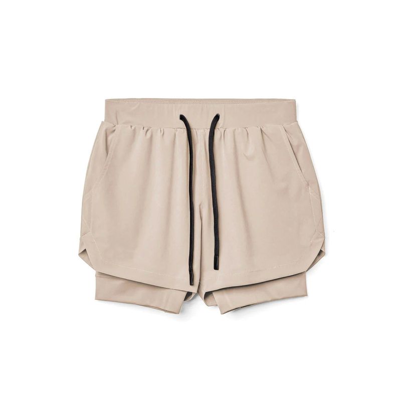 Men's Athletic Shorts Double-layer Fitness Wicking Khaki A L