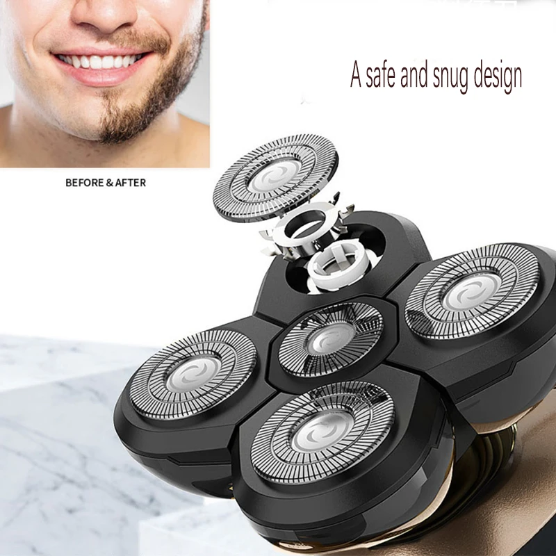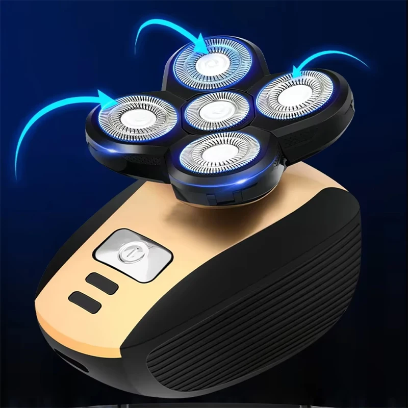Men's automatic electric shaver, USB charging, 5-blade multi-functional bald brush, nose hair trimmer, portable shaver