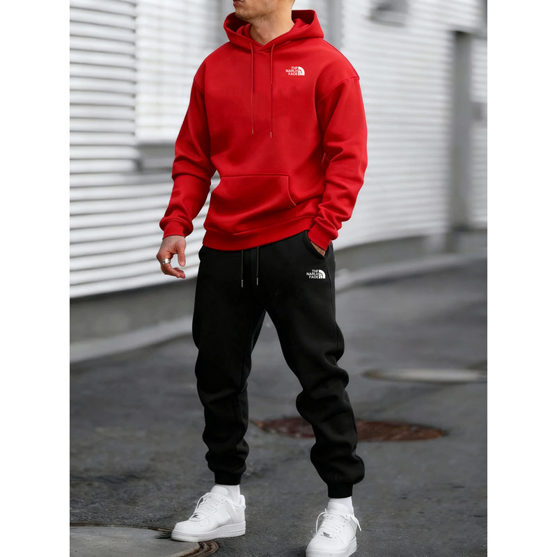 Men's Autumn and Winter Pattern Casual Two-Piece Set Hooded Sweatshirt and Pants withPockets Regular Fit Qutdoor Sport Suit