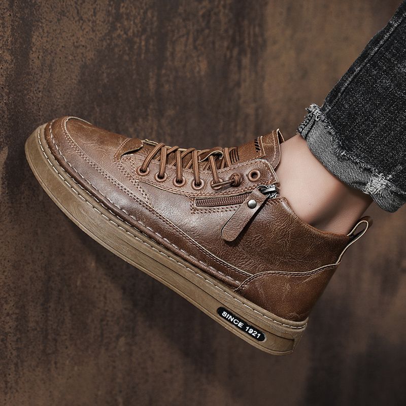 Men's boots autumn and winter warm plush outdoor casual boots workwear boots fashion versatile soft soled comfort leather boots