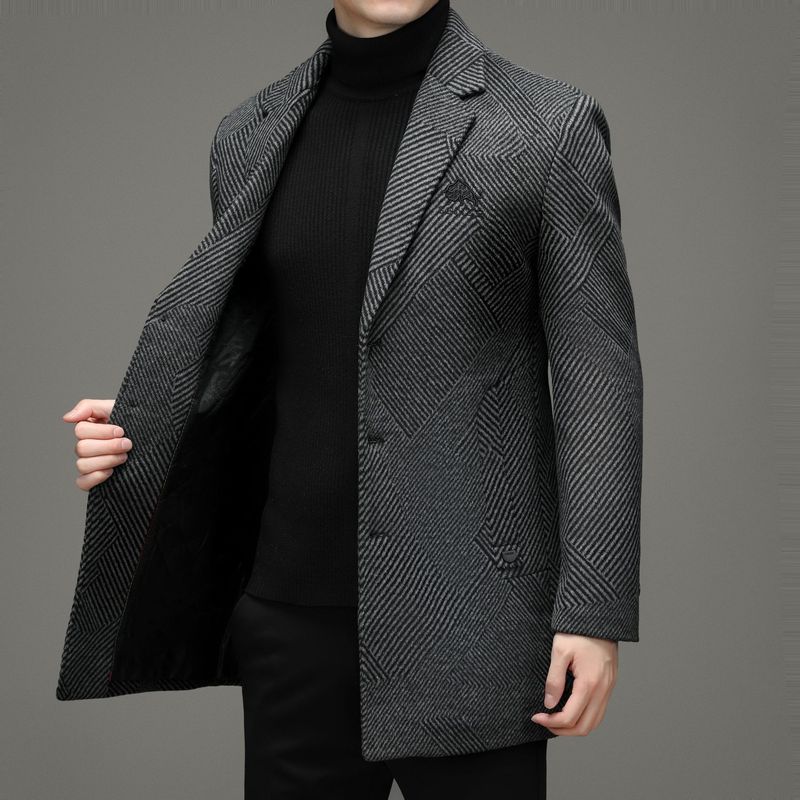 Men's British Cashmere Warm Woolen Coat Coffee color 3XL