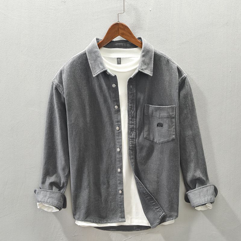 Men's Brushed Long Sleeve Casual Shirt Gray XXXL