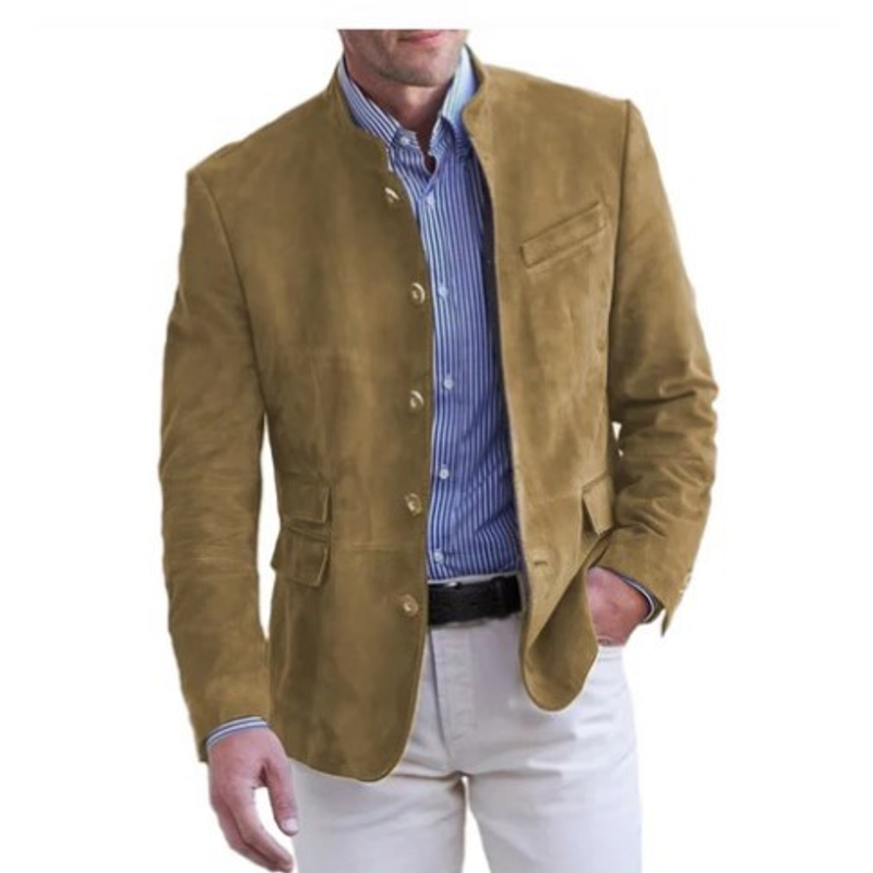 Men's Business Casual Suit Jacket Autumn Winter Fashion Commuter Daily Basic Blazer Solid Stand Collar Jacket Men's Clothing Purple Blue XL