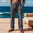 Men's Casual Baggy Straight Trousers Dark Gray L
