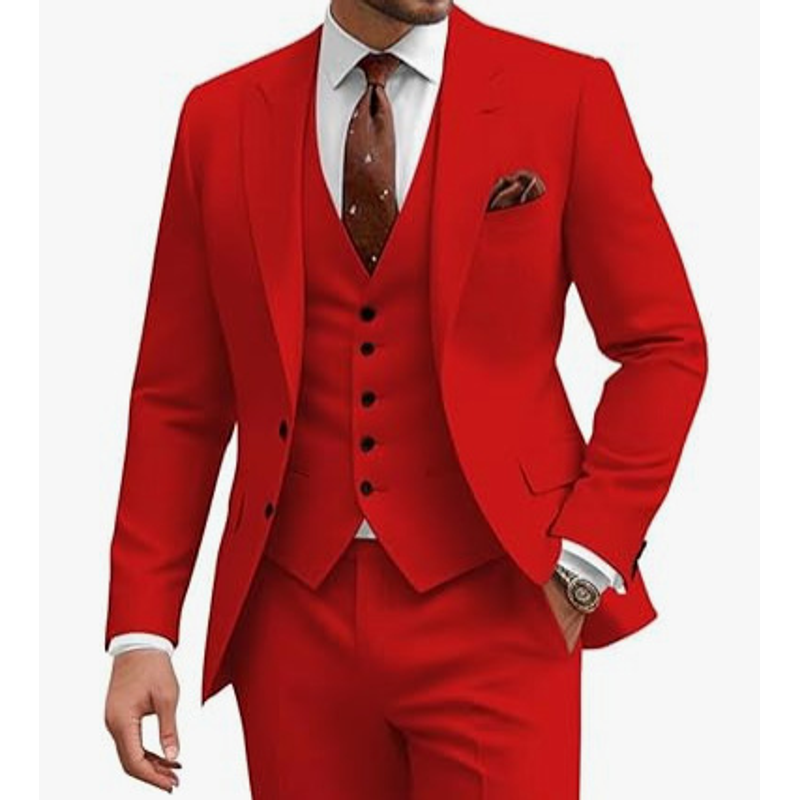 Men's Casual Business Wedding Three-piece Suit Bright Red 4XL
