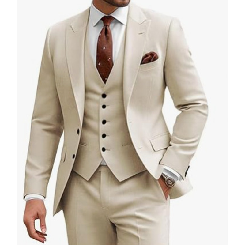 Men's Casual Business Wedding Three-piece Suit Champagne 4XL