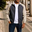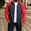 Men's Casual Coat Stand Collar Contrast Color Jacket Red M