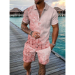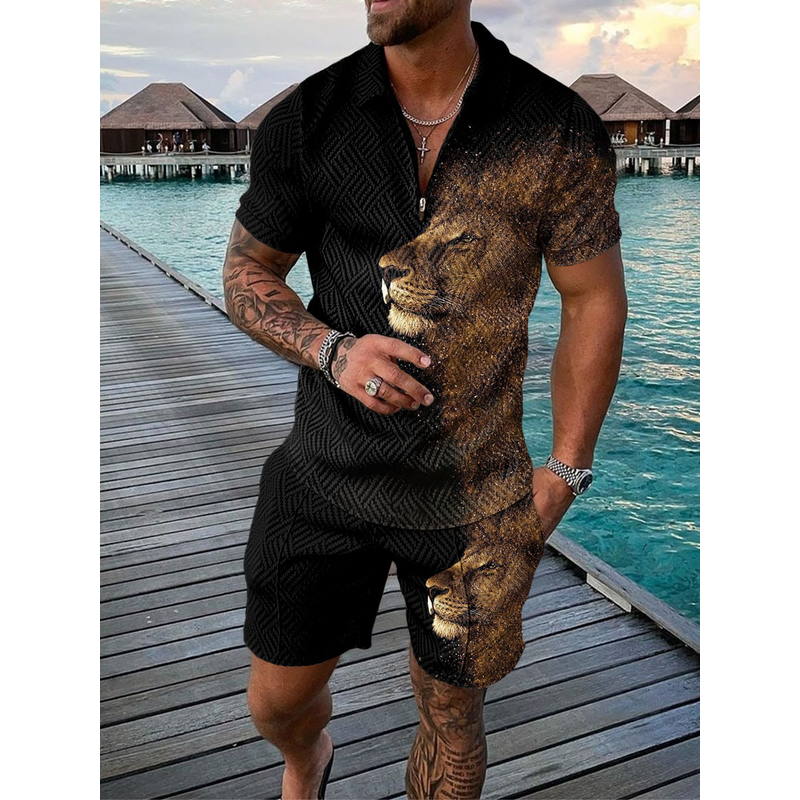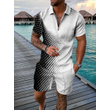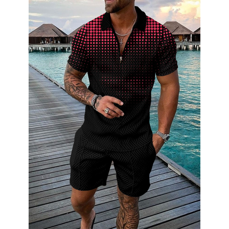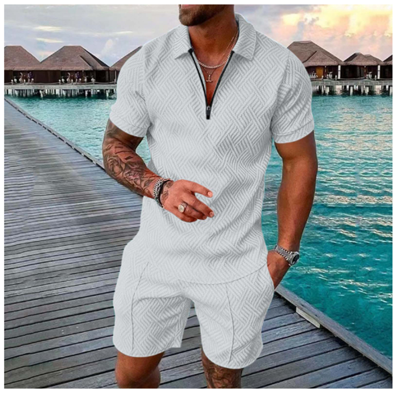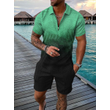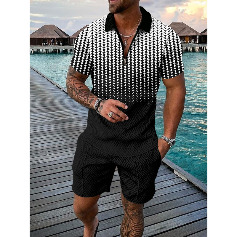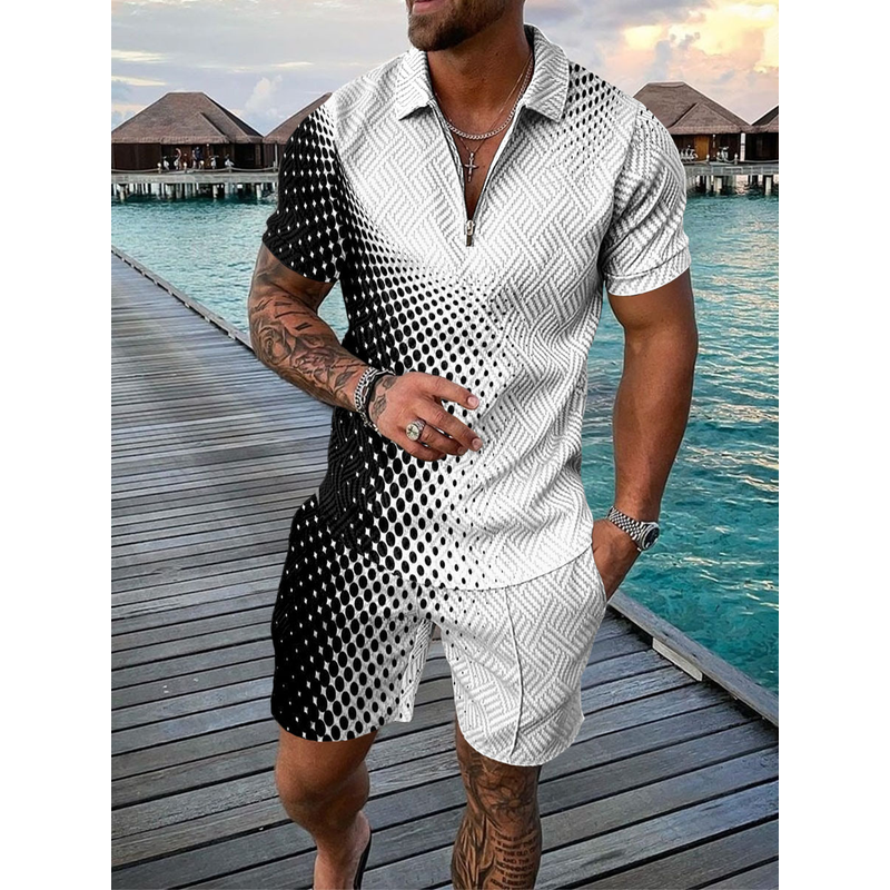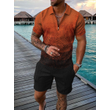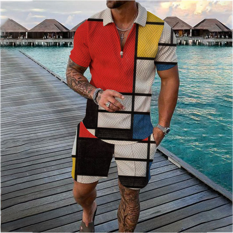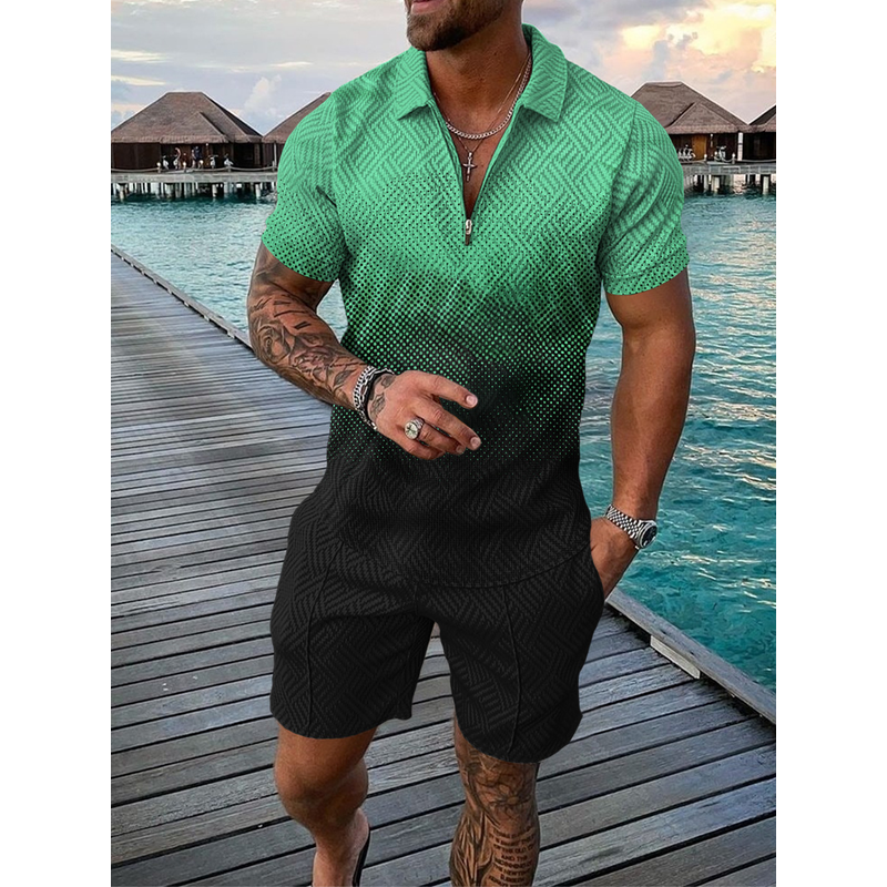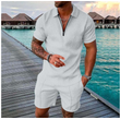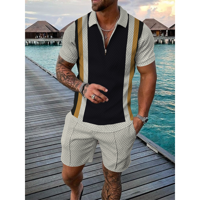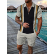 Men's Casual Color Contrast POLO Zip Lapel Shirt Short Sleeve Suit FLYXK1 S