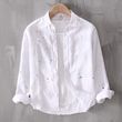 Men's Casual Linen Long-sleeved Shirt Art White 3XL