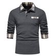 Men's Casual Long Sleeve Check Neck Polo Dark Grey 2XL