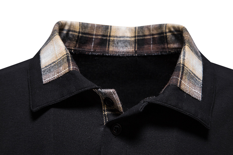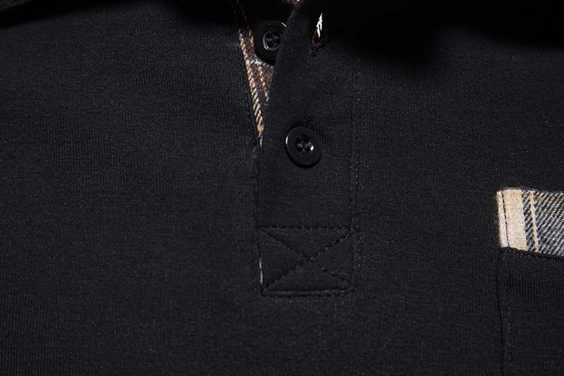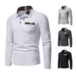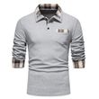 Men's Casual Long Sleeve Check Neck Polo Light Grey L